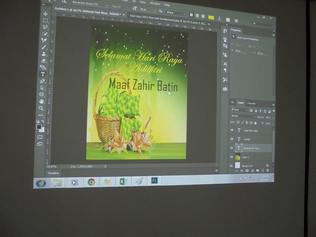 11 Jun 2017 | Aktiviti TerkiniPada 10 June 2017 bertempat di dalam Bilik Latihan PI Kg. Paya Jakas, pihak kami telah mengadakan kelas membuat poster dengan tema Hari Raya Aidilfitri. Menerusi kelas ini, mereka yang menyertai kelas multimedia dapat menggunakan aplikasi photoshop dengan lebih baik dan cekap.