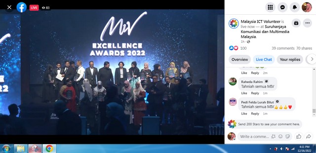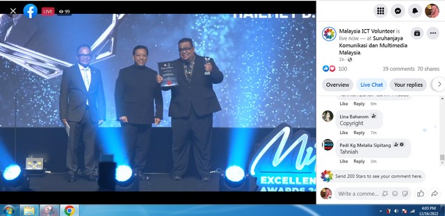 17 Disember 2022 | Aktiviti TerkiniPada 16 Disember 2022, bertempat di Cyberjaya, Selangor telah berlangsung Hari Anugerah kepada Sukarelawan ICT Malaysia bertujuan untuk memberi pengiktirafan kepada sukarelawan ICT di atas kerjasama yang diberikan kepada pihak MCMC bagi membantu masyarakat tempatan mengenai ICT dan sekali gus membuka ruang dan peluang pekerjaan kepada Rakyat Malaysia melalui internet dan teknologi. Disamping itu juga, pelbagai hadiah menarik menanti kepada peserta sukarelawan yang terpilih ini. Di antara yang terlibat adalah pihak MCMC dan Malaysia ICT Volunteer.