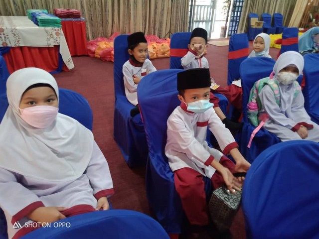 Kemudian, murid-murid diberikan sedikit cenderahati kerana menghadiri majlis tersebut.