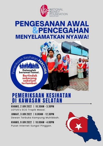 2 Julai 2022 | Aktiviti TerkiniPada 1 Julai 2022, National Kidney Foundation telah menganjurkan program Apa Khabar bertujuan untuk memberikan maklumat mengenai kesihatan dan penjagaan buah pinggang kepada seluruh rakyat Malaysia. Disamping itu juga, National Kidney Foundation ini juga turut turun padang ke lokasi-lokasi yang terpilih agar dapat mendekati dengan rakyat tempatan. Di antara yang terlibat adalah pihak Kementerian Kesihatan Malaysia dan National Kidney Foundation.