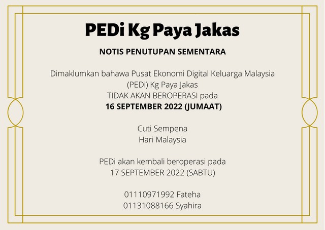 Notis Penutupan Sementara Sempena Hari Malaysia 2022 seperti berikut:-