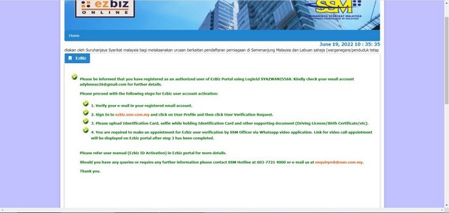 Oleh yang demikian, beliau ingin lesen SSM bagi tujuan untuk memohon bantuan berkaitan keusahawanan khususnya dari pihak TEKUN dan AIM. Segala urusan pendaftaran hanya melalui aplikasi Whatsapp sahaja dan beliau memberikan segala maklumat butiran peribadi sebagai langkah awal untuk pendaftaran akaun Ezbiz. Pendaftaran di peringkat permulaan ini hanya berlangsung selama setengah sahaja sehingga proses membuat janji temu bersama pegawai SSM melalui video call Whatsapp. Secara tidak langsung membolehkan Puan Nur Khalida berkomunikasi dengan PEDi Paya Jakas.