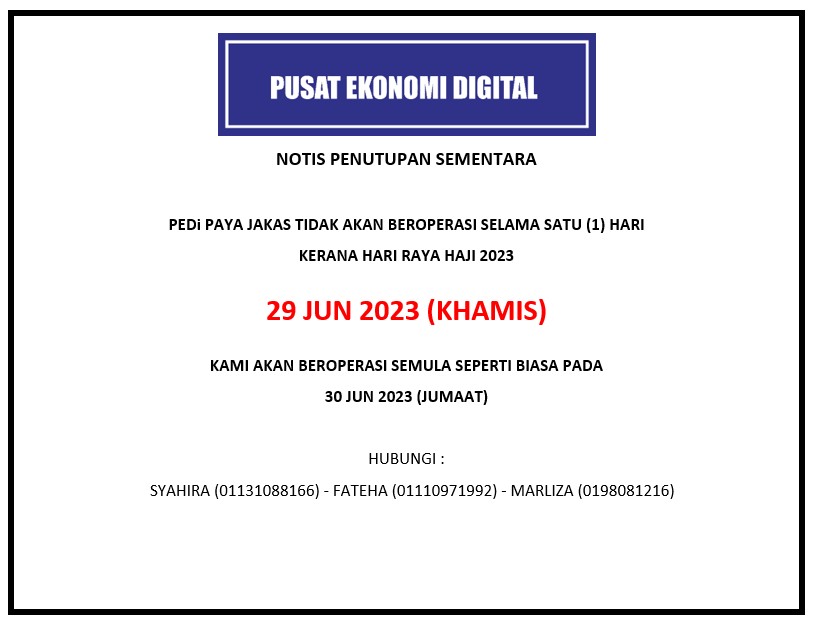 NOTIS PENUTUPAN SEMENTARA SEMPENA HARI RAYA HAJI 2023