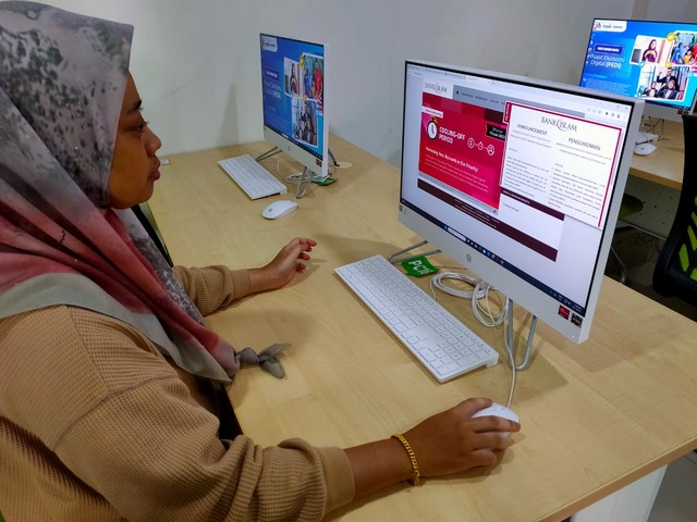 Pada kali ini,pihak staf NADI telah memberi tunjuk ajar kepada Puan Sunarti, salah seorang penduduk Kampung Paya Jakas yang ingin mendaftar BSN Online Banking memandangkan beliau tidak berjaya membuat perbankan online sebelum ini.