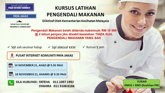 Kursus Latihan Pengendali Makanan Kerjasama NB Food Specialist Center.