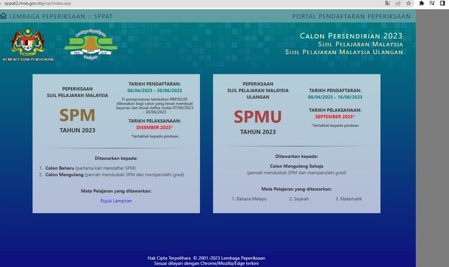 Permohonan Mengulangi Kertas SPM Di Laman Sesawang