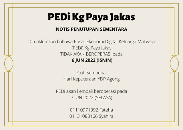 Notis Penutupan Sementara Sempena Hari Keputeraan Yang Di-Pertuan Agong