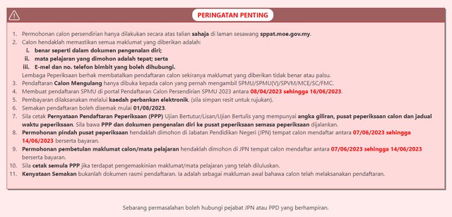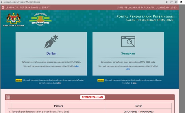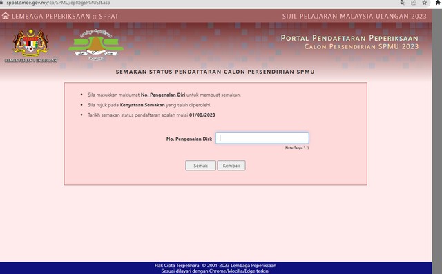 Permohonan Mengulangi Kertas SPM Di Laman Sesawang