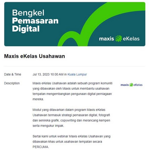 Program Taklimat eKelas – Maxis (Pendidikan Secara Digital)