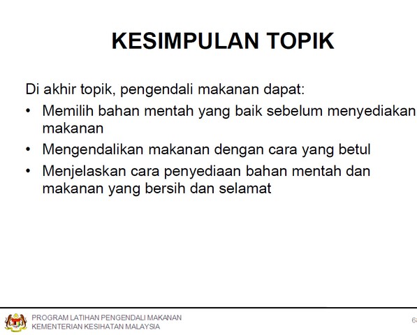 Kursus Latihan Pengendali Makanan Kerjasama NB Food Specialist Center.